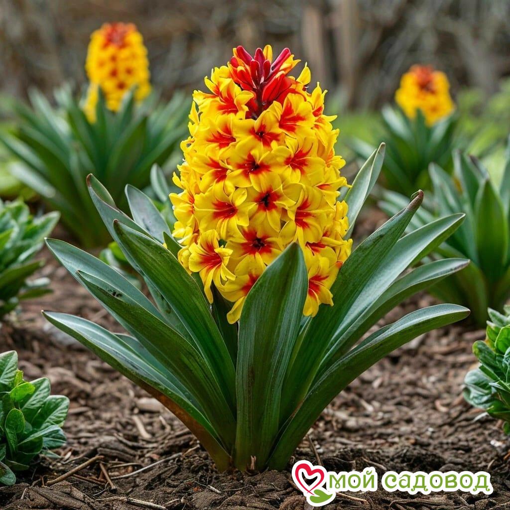 Гиацинт «Скай Блюм»: солнечный поцелуй с малиновым акцентом в вашем саду Добро пожаловать в интернет-магазин “Мой Садовод”! Мы с радостью представляем вам сорт, который подарит вашему саду ощущение весеннего тепла и радости, — гиацинт “Скай Блюм” (Sky Bloom). Этот гиацинт, словно солнечное утро, сочетает в себе яркий желтый цвет с изысканными малиновыми акцентами, создавая неповторимую атмосферу праздника. “Мой Садовод” — ваш надежный партнер в создании сада вашей мечты, где каждый цветок — воплощение красоты и гармонии! Гиацинт «Скай Блюм» — это настоящий солнечный луч, который пробуждает сад от зимней спячки. Его яркие жёлтые цветки, украшенные нежными малиновыми штрихами, словно тёплый солнечный поцелуй, притягивают взгляды и дарят ощущение радости и позитива. Представьте, как этот прекрасный гиацинт будет смотреться на вашей клумбе, в бордюре или в вазе, напоминая о весне и новых начинаниях! Основные характеристики гиацинта “Скай Блюм”: Солнечный жёлтый цвет с малиновыми акцентами: главная особенность этого сорта — яркая и привлекательная окраска цветков. Основной цвет лепестков гиацинта “Скай Блюм” — жёлтый, словно солнце, дарящее тепло и свет. Малиновые штрихи и переливы: на фоне основного желтого цвета присутствуют изысканные малиновые акценты и переливы, которые делают цветки еще более привлекательными и интересными. Малиновые штрихи могут быть в виде тонкой каймы по краям лепестков или более крупных пятен, создавая уникальный узор на каждом цветке. Размер цветка: каждый отдельный цветок гиацинта «Скай Блюм» имеет небольшой размер, около 2-3 см в диаметре. Однако благодаря плотному расположению множества цветков в колосовидном соцветии создается впечатление пышного и обильного цветения. Длина соцветия может достигать 15-20 см, превращаясь в настоящий солнечный букет. Высота растения: Гиацинт “Скай Блюм” — это компактное растение, достигающее в высоту 20-25 см. Такая высота делает его идеальным для создания эффектных композиций на клумбах, в бордюрах, а также для выращивания в контейнерах на балконах и террасах. Он прекрасно впишется в любой ландшафтный дизайн, добавив ему нотку радости и солнечного настроения. Аромат: Гиацинт “Скай Блюм” обладает сильным, приятным и насыщенным ароматом, который наполнит ваш сад весенним настроением и создаст атмосферу уюта и комфорта. Зимостойкость: Гиацинт “Скай Блюм” обладает хорошей зимостойкостью, что позволяет выращивать его в большинстве регионов с умеренным климатом. Однако в регионах с суровыми зимами рекомендуется мульчировать посадки, чтобы защитить саженцы от вымерзания. Другие характеристики: Гиацинт “Скай Блюм” отличается ранним сроком цветения, устойчивостью к основным болезням и вредителям, а также относительной неприхотливостью в уходе. Он хорошо размножается и сохраняет свою декоративность при правильной агротехнике. Преимущества покупки саженцев в интернет-магазине “Мой Садовод”: Высокое качество саженцев: мы гарантируем высокое качество наших саженцев гиацинта “Скай Блюм”. Все наши растения выращиваются в нашем собственном питомнике с использованием современных технологий и под строгим контролем специалистов. Соответствие сорту: мы гарантируем полное соответствие сорта «Скай Блюм» заявленному описанию. Вы полу